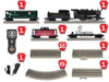 •RailSounds RC™ sound system with steam chuffing and background sounds, whistle, bell, and user-activated announcements