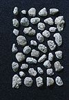 Rocks range in size from smallest: 1/4" L x 3/8" W x 3/8" H to largest: 1 1/4" L x 3/4" W x 3/8" H